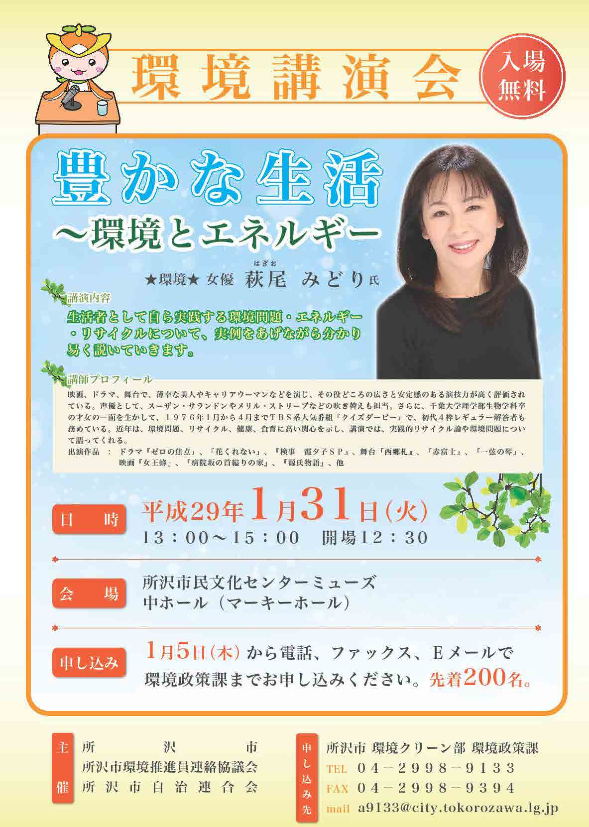 続きを読む所沢での環境講演会のご案内です。 女優の萩尾みどりさんの講演です。 ——————————— ...
